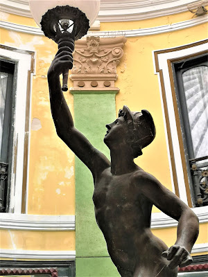 He pensado poner alguna de esas imágenes, pero no he reunido el valor suficiente para contemplar aquí la mirada de mis padres, tan jóvenes, tan ilusionados ante la vida. En su lugar, traigo el Mercurio del Pasaje Gutiérrez de Valladolid, que ahora está en obras. Esta escultura imita el Mercurio volador del escultor renacentista italiano Juan de Bolonia. Lo traigo porque este lugar, uno de los más hermosos de mi ciudad, estuvo cerrado durante tantos años, que llegué a pensar que no existía. Lo busqué tantas veces sin éxito, que llegué a olvidarme de él. Es decir, lo traigo aquí para no seguir hablando de estas viejas fotografías de mis padres, que posaban ante la cámara cuando la vida se les abría, apasionante e incierta.