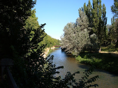 Luego, uno se reconcilia con la memoria, porque la fabrica, igual que hemos idealizado aquellos lugares a los que nos llevaban nuestros padres, ciertos veranos en los que fuimos felices o descubrimos el amor adolescente. Y nos paramos a ver, con calma, las fotografías tomadas, para decidir cuál imprimimos, cuál enmarcamos. Curiosamente, la primera que elijo es ésta de una curva del Arlanzón que ya ha salido en este blog: la última de las vacaciones y la primera de la vida cotidiana.