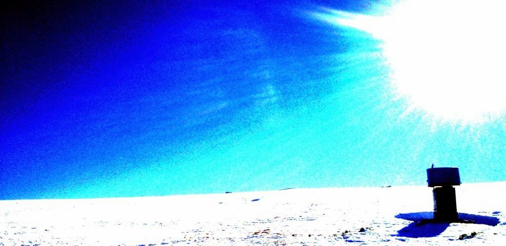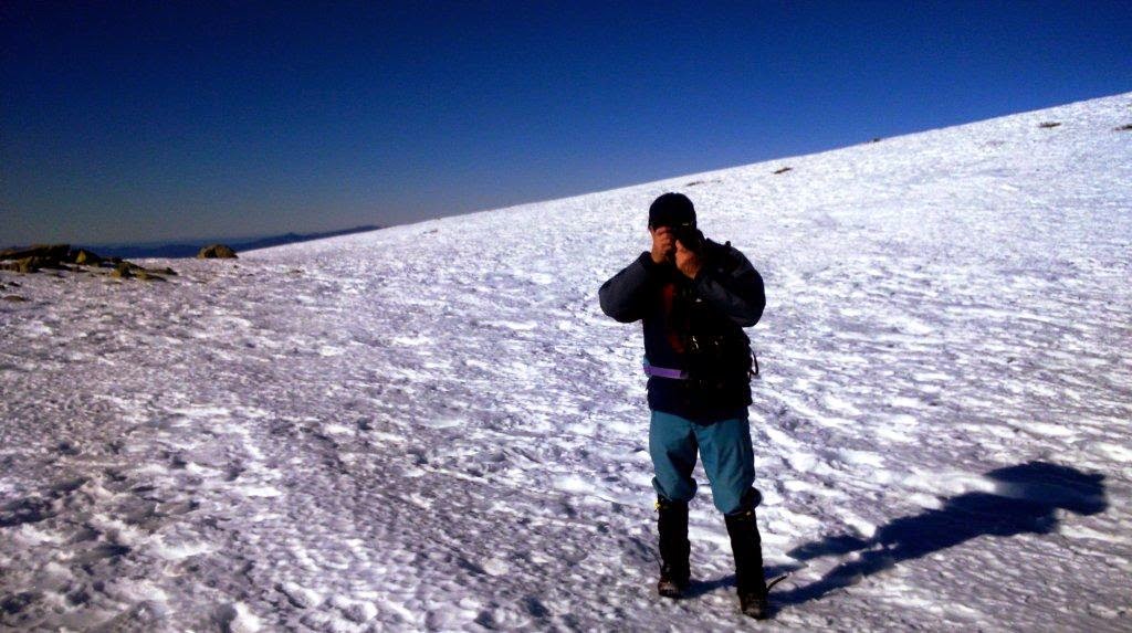 Descorchamos el benjamín de cava y lo repartimos en dos vasos. Manolo y yo brindamos por su cumpleaños mirando hacia el círculo de Hoya Moros. A nuestra espalda, La Ceja y delante el Paso del Diablo y los Dos Hermanitos, un poco a la derecha Peña Negra, jugando con el pantano. Habíamos acampado para comer en unas peñas libres de nieve en el suave descenso hacia Hoya Moros, tras llegar allí desde El Calvitero. Cumplimos todos los ritos, sobre todo el que manda brindar por nosotros, por los presentes, para celebrar la vida cuando se disfruta. Porque todo lo otro se quedó abajo, en los primeros pasos del ascenso.