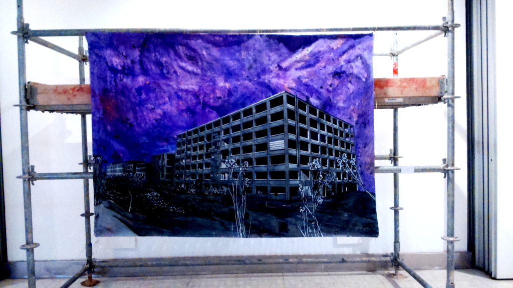Pero sería injusto reducir la muestra de Gaspar Francés a una intervención en lo inmediato puesto que también plantea una poética del ser humano que haga repensar la ciudad como concepto. En un paisaje apocalíptico - el artista, como he dicho, no pretende ser original en la definición usual de este término y las huellas tanto temáticas como técnicas son fácilmente reconocibles- la ciudad queda arrasada y se nos presenta como edificios y espacios vacíos, arruinados y sin sentido precisamente porque falta lo más importante en ellos, el ser humano.