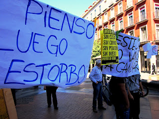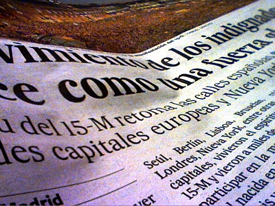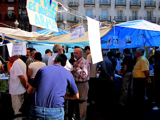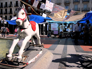 En estos días se ha vinculado la movilización española con las revoluciones ocurridas en los últimos meses en algunos países árabes. Aunque hay indudables puntos de conexión -el protagonismo inicial de los jóvenes, el uso de Intenet y específicamente de las redes sociales, el descontento de un sector de la población que ve truncado su presente y futuro, la organización asamblearia de las concentraciones-, los hay también que lo alejan radicalmente. España es una democracia y las alteraciones en el pulso democrático detectadas en los últimos años -que he intentado poner en evidencia en varias entradas en este blog desde su inicio- no se debe a un gobierno dictatorial sino a la pasividad de una sociedad que se vio, de pronto, enriquecida y aceptó a cambio cerrar los ojos ante la corrupción y la pérdida de valores y acoger sin más un mundo propio de un parque temático y una buena dosis de anestesia servida por los grandes medios de comunicación.