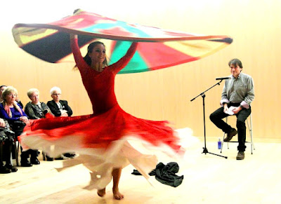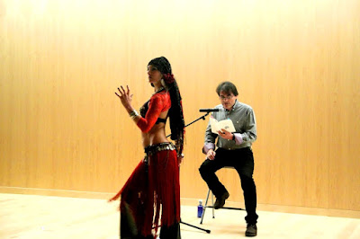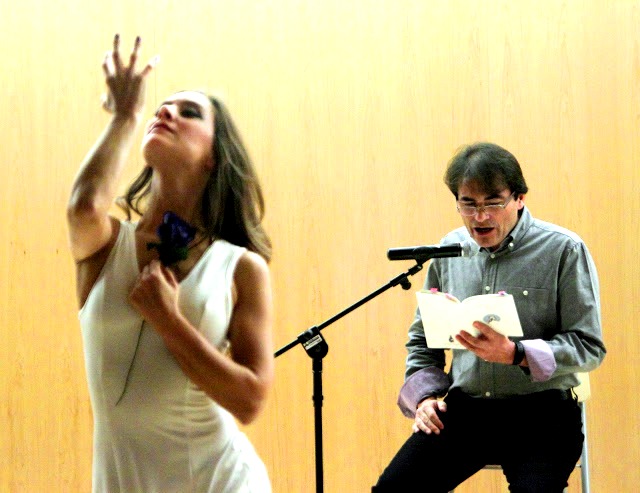 Con la ayuda de Paloma Fernández-Villa -a la que tanto debo como Secretaria del Club de lectura y como amiga-, de Neftis Paloma -coreógrafa y bailarina que se prestó con entusiasmo y profesionalidad a colaborar de forma generosa en el proyecto- de Álvaro Manso -que lleva con tanto acierto la Librería Luz y Vida de Burgos y que se ha convertido en un promovedor infatigable de actividades culturales de la ciudad-, y de mi buen amigo Miguel Martín Camarero -que ejerció de técnico de sonido solventando con eficacia todas las dificultades-, el reto fue más fácil de alcanzar. Es un placer contar con personas como estas, llenas de creatividad, entusiasmo y saber hacer, que no ven problemas nunca sino soluciones y que son capaces de hacer un hueco de horas en proyectos artísticos y culturales. Sin ellas, el acto del viernes no hubiera sido posible.