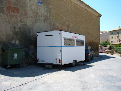 En Uncastillo, cuando el cólera de los siglos XVIII y XIX, los habitantes encalaban los marcos de los vanos de las casas para evitar que la enfermedad entrara en ellas. Aparecen así los edificios con los ojos y las bocas pintadas mirándonos asombrados, mientras unos topes de madera, artesanales pero eficaces, impiden que la fábrica se venga abajo. En un ingenioso alarde de burla a la ley, que imponía impuestos por superficie medida al nivel del suelo y que obligaba a una distancia mínima en las calles que permitiera el paso a los carros de ruedas grandes, las fachadas se ensanchan en el primer piso y sobresalen de la planta baja en una arriesgada curvatura. Esa prominente barriga, que tira el peso hacia afuera, se contrarresta con el sistema de vigas que se ve en la imagen. Como si al coser, la costurera se hubiera dejado olvidada la aguja en la última puntada.