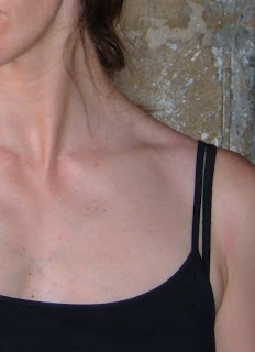 [A todo esto, la foto está tomada en un escaparate con la imagen promocional del perfume Jasmin Noir. Lo más gracioso es que la imagen original es en blanco y negro y a mí me salió en azul: el color no fue buscado, el reflejo que lo atenúa, sí. Será cosa del deseo.]